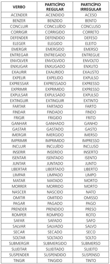 Devemos ter cuidado com os verbos que são abundantes de particípio, ou seja, aqueles verbos que possuem dois particípio (regular e irregular).