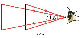 Quanto mais longe um objeto estiver do globo ocular, menor será o ângulo visual segundo o qual ele é visto. É por essa razão que, à medida que um objeto se afasta, ele parece menor para o observador. Daí o ângulo visual ser denominado também diâmetro aparente.