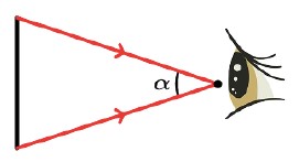 Os raios médios que partem dos extremos do objeto e atingem o globo ocular formam entre si o ângulo α. A esse ângulo dá-se o nome de ângulo visual.