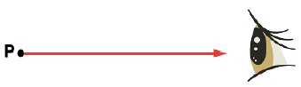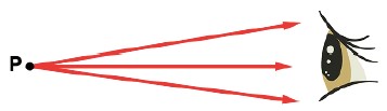 Ao visualizar um ponto luminoso P, o globo ocular G recebe um feixe de luz dele proveniente.