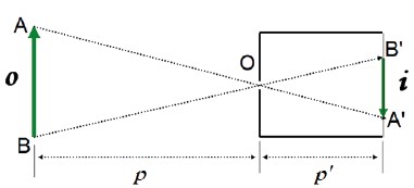 Como a luz se propaga em linha reta, os triângulos ABO e A’B’O são semelhantes, portanto: