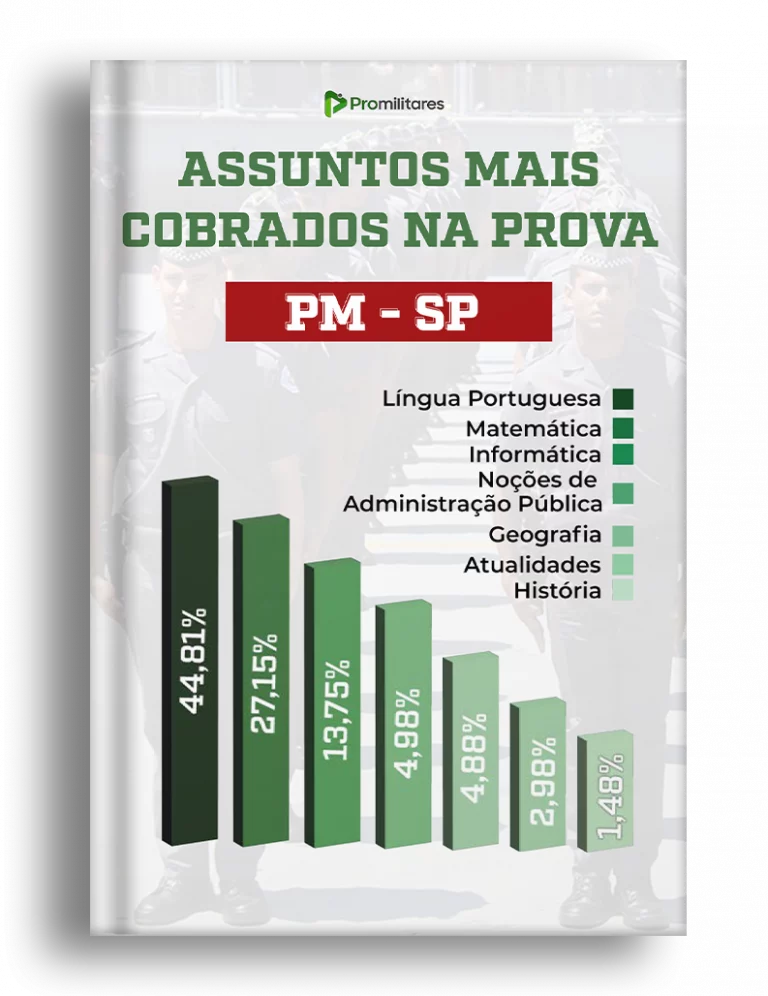 O Promilitares trouxe um infográfico mastigado com as matérias que mais caem no concurso da Polícia Militar de São Paulo. O material conta com uma lista de questões para você treinar muito.
